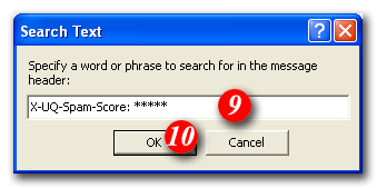 For example, if you wanted to consider anything with a score of 3 or more to be spam, the rule would look like: 'X-SpamDetect: ***'. Decreasing the number of asterisks will result in classifying more e-mails as spam. You may need to check your spam folder more carefully for non-spam e-mails that might have been classified as spam. If you wanted to rate anything with a score of 8 or greater as spam, the rule would look like: 'X-SpamDetect: ********'. Increasing the number of asterisks may result in fewer filtered e-mails being classified as spam and more potential spam staying in your Inbox.