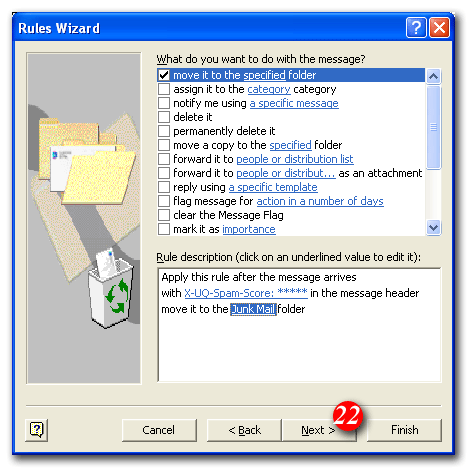 | 25)Put a tick in the 'Run this rule now on messages already in the "Inbox"' checkbox (optional) |